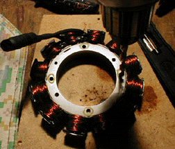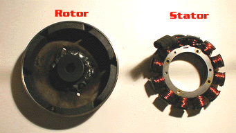 Here are the two separate parts that make up the alternator: the "Rotor" and "Stator". Be sure to order both parts! Caution: the magnets in the rotor are STRONG! Watch out when you insert the stator into the rotor, it pulls hard enough to badly pinch fingers! |