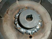 Weld the sprocket securely onto the inside of the rotor. Use aluminum foil to protect the magnets on the rotor from all welding, drilling, and grinding activities. |