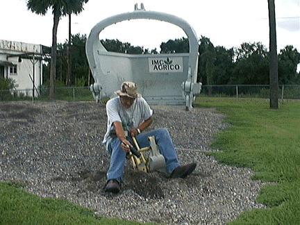 Operating the mini steam shovel while taking readings. Notice the large dragline shovel in the background.