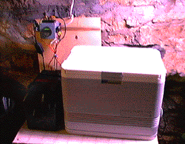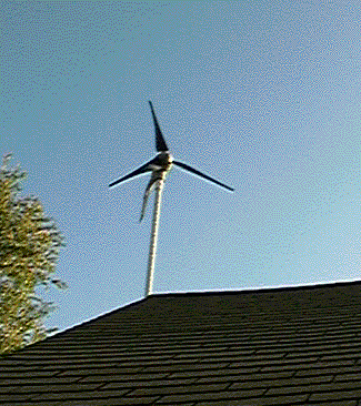 Here is a Southwest Windpower Systems AIR 303 wind turbine mounted on the roof of dangerous laboratories. This unit will produce 300 watts maximum. It is hooked up to the charging station and 12v cooler in the basement. | ||||||||